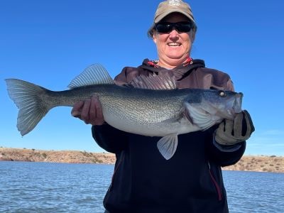 The bite is starting to improve for White Bass and Walleye. Whites are on the main lake flats in 30 to 40 feet of water. Vertical jigging with SlingBlades is working well. The Walleye are deeper, 40 to 45 feet, but they are also on the flats close to drop offs. I have seen some really nice Walleye caught this week, a couple over 5 lbs. One of our customers sent a picture of a really nice 'Eye that she caught, I didn't get the name but the picture is in the Catch of the Week.
